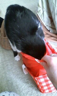 私の赤いバックに頭を突っ込んでいるところ・・・