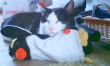 しかも、ペンギンのぬいぐるみを枕にして・・・